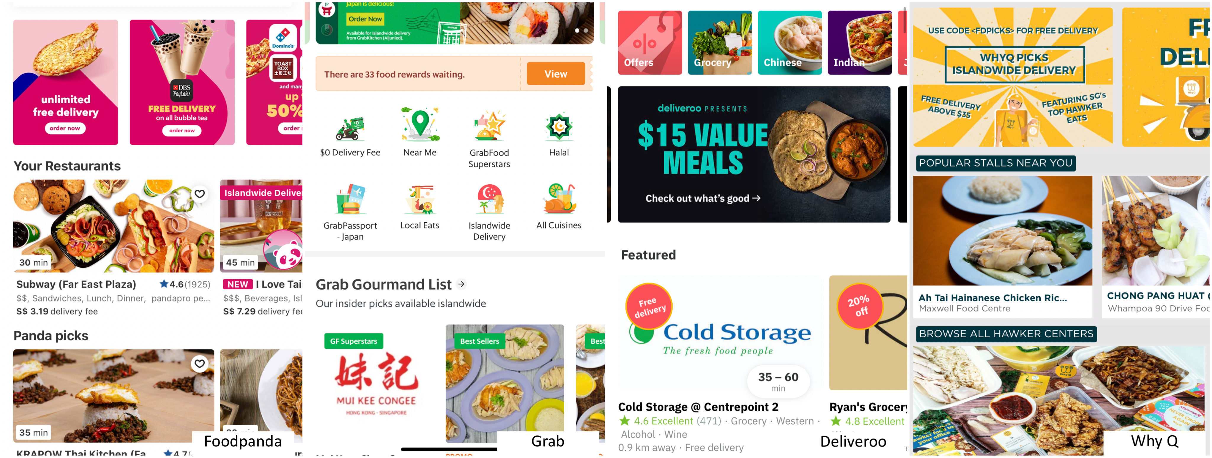 Images taken from Foodpanda, Grab, Deliveroo and Why Q Apps