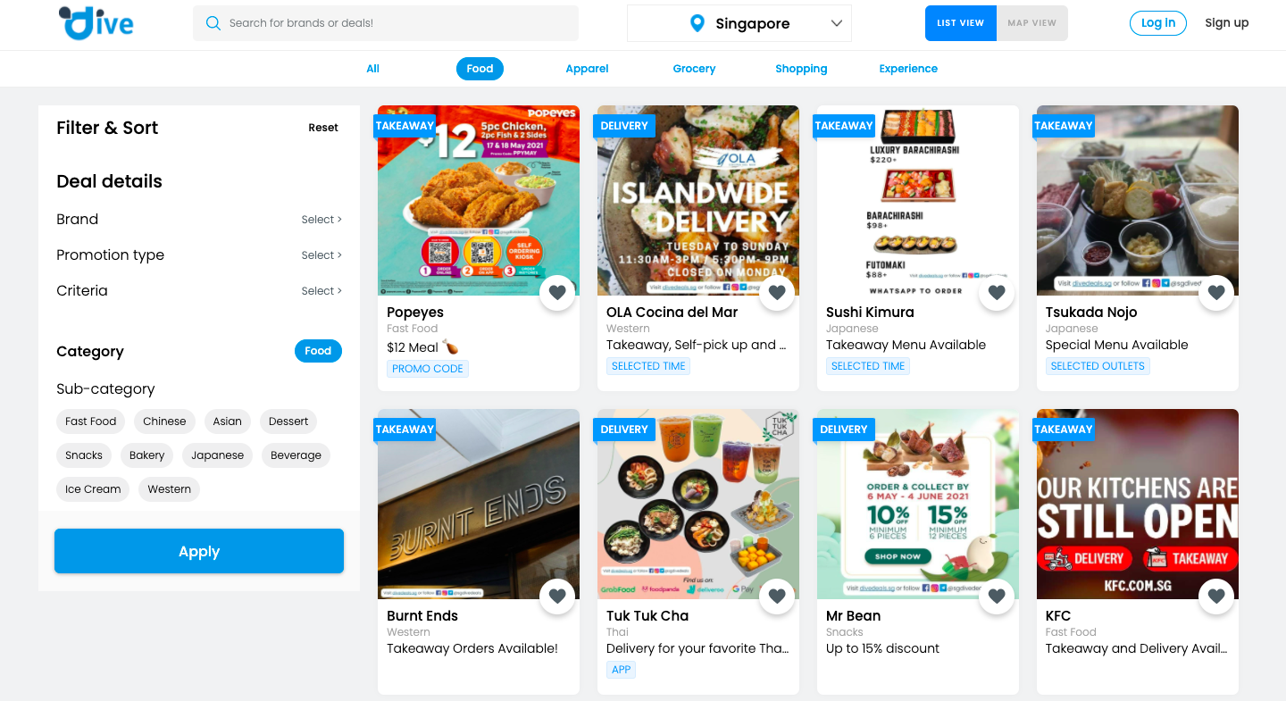 If you're on the lookout for good deals and good food, Dive Deals is a platform that curates and highlights a large variety of takeaway and delivery food deals available, with relevant links on where to order from.