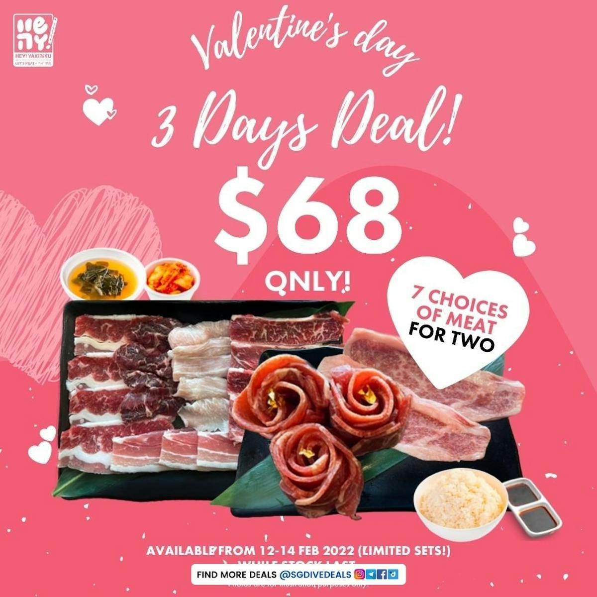 Dine in with your sweetheart and enjoy the exclusive platter that features 7 types of meat - Japanese Hokkaido Wagyu included!! Get this platter for 2 at $68 now! Only available with limited sets from 12 - 14 Feb!