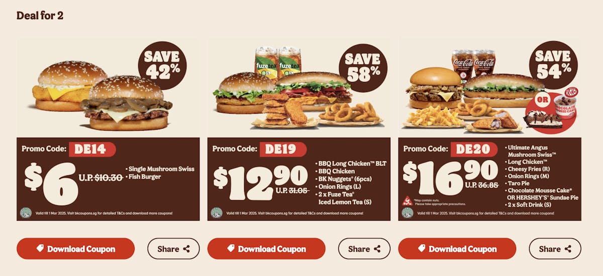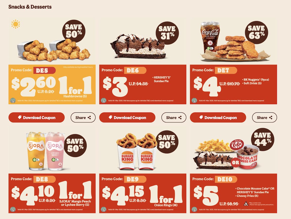 Looking for all the Burger King promo codes and discount coupons? In this new season, featuring breakfast deals, bundle deals and many other coupons. Remember to bookmark, save and share this page as we will be constantly updating this with all the latest coupons.