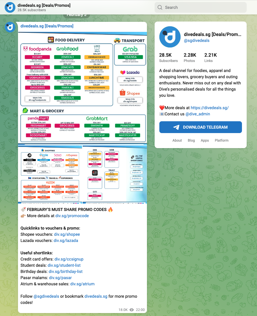 1. Essential Singapore Telegram Channels for Promotions and Deals: