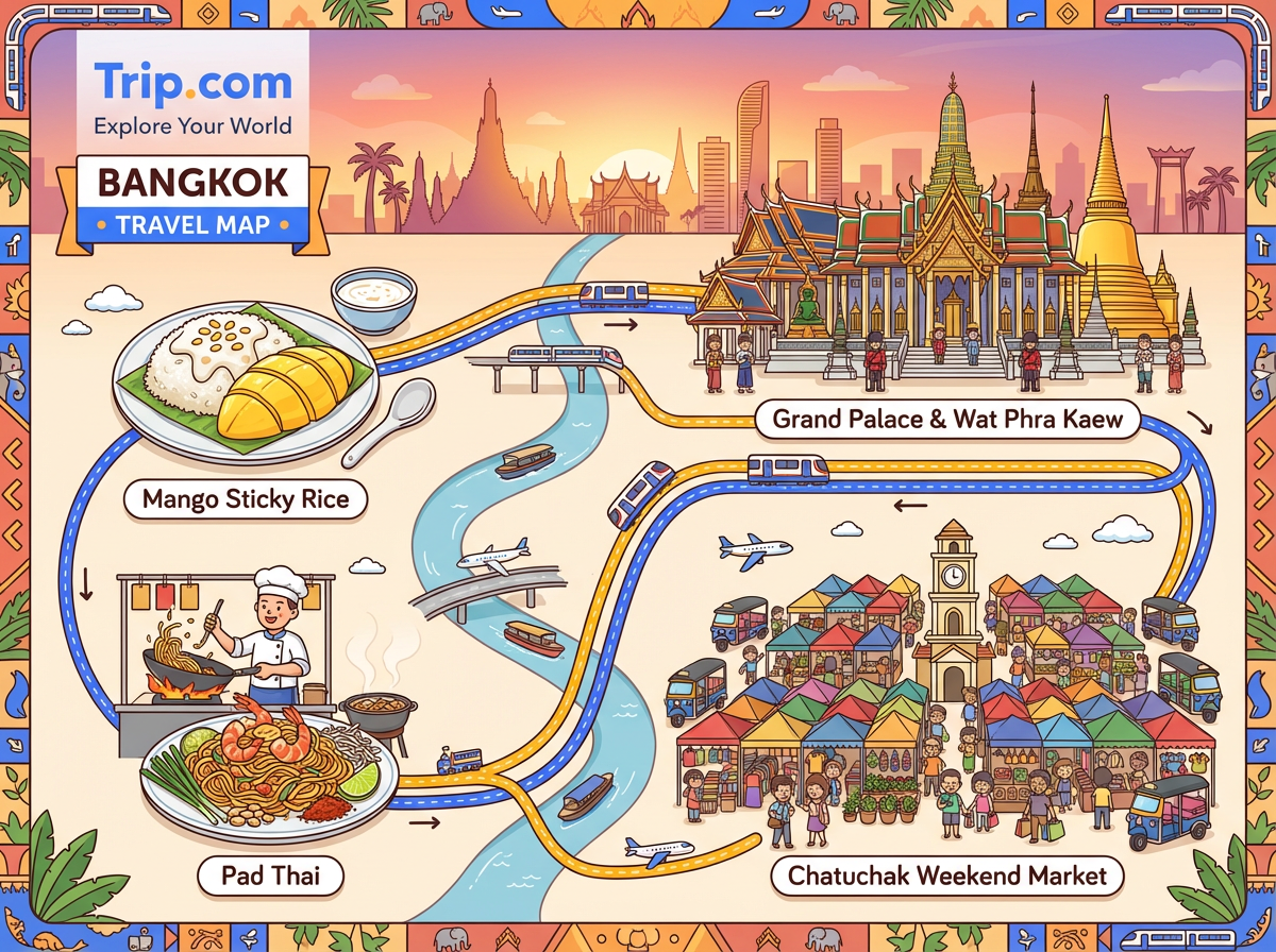 - Grand Palace and Wat Phra Kaew offer iconic Thai architecture and royal history